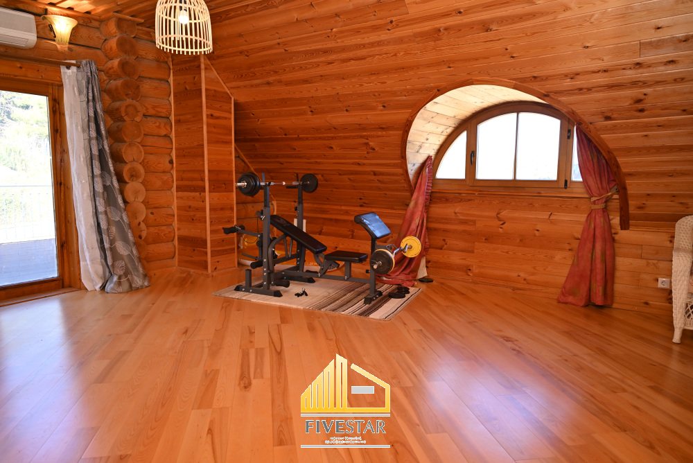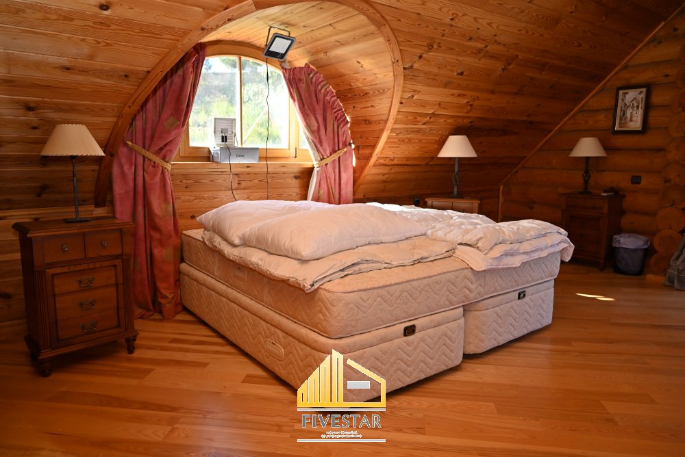 Esta preciosa casa independiente de dos plantas, está totalmente construida en madera y con buenas calidades, tiene una calidez especial y una sensación de hogar que se siente al traspasar la entrada. Con preciosas vistas a la montaña, sobre todo desde su terraza superior, y está ubicada en una zona muy tranquila ideal para el relax, a sólo 2 km de Montroy, donde disponemos de todos los servicios necesarios.