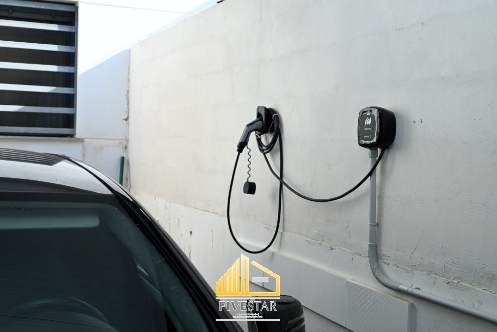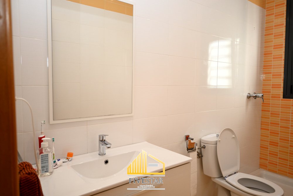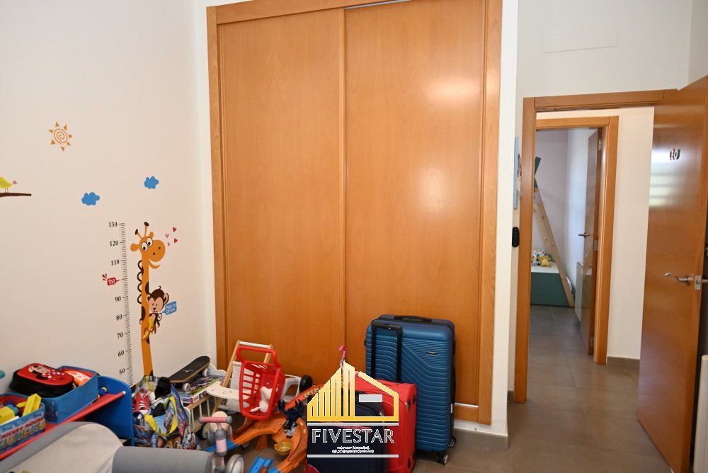 En toda la casa, los tonos neutros y los suelos de baldosas crean un ambiente luminoso y espacioso. Los detalles prácticos incluyen armarios empotrados y una zona de lavandería.